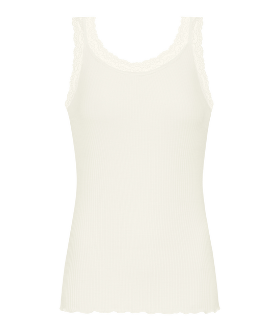 - Therische top met platte, zachte kant - Brede schouderbandjes - Ronde hals - Geribbelde structuur - Zeer elastisch - 85% wol, 15% zijde
