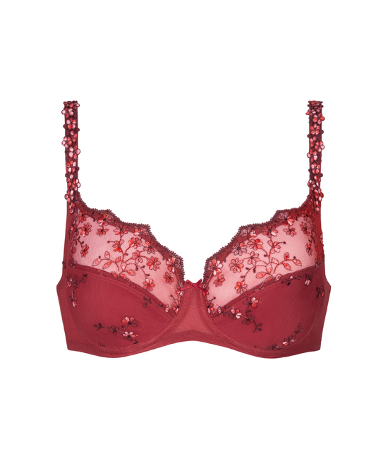 - Beugel beha - Zonder vulling - Geborduurde cup - Met beugels - Verstelbare bh-bandjes - Haak- en oogsluiting, drievoudig verstelbaar - Bloemenkant