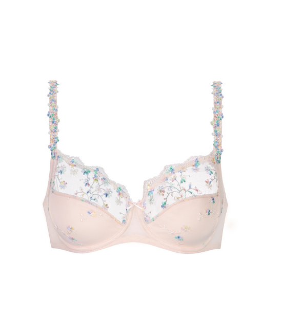 - Beugel beha - Zonder vulling - Geborduurde cup - Met beugels - Verstelbare schouderbandjes - Haak- en oogsluiting, drievoudig verstelbaar - Bloemenkant