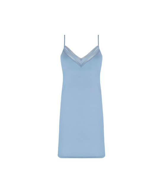 - Nachtkleed met fijne bandjes - Lichtjes breder uitgaand onderaan - Lengte boven de knie - Regelbare bandjes - 91% Modal, 6% Elasthanne, 3% Polyamide